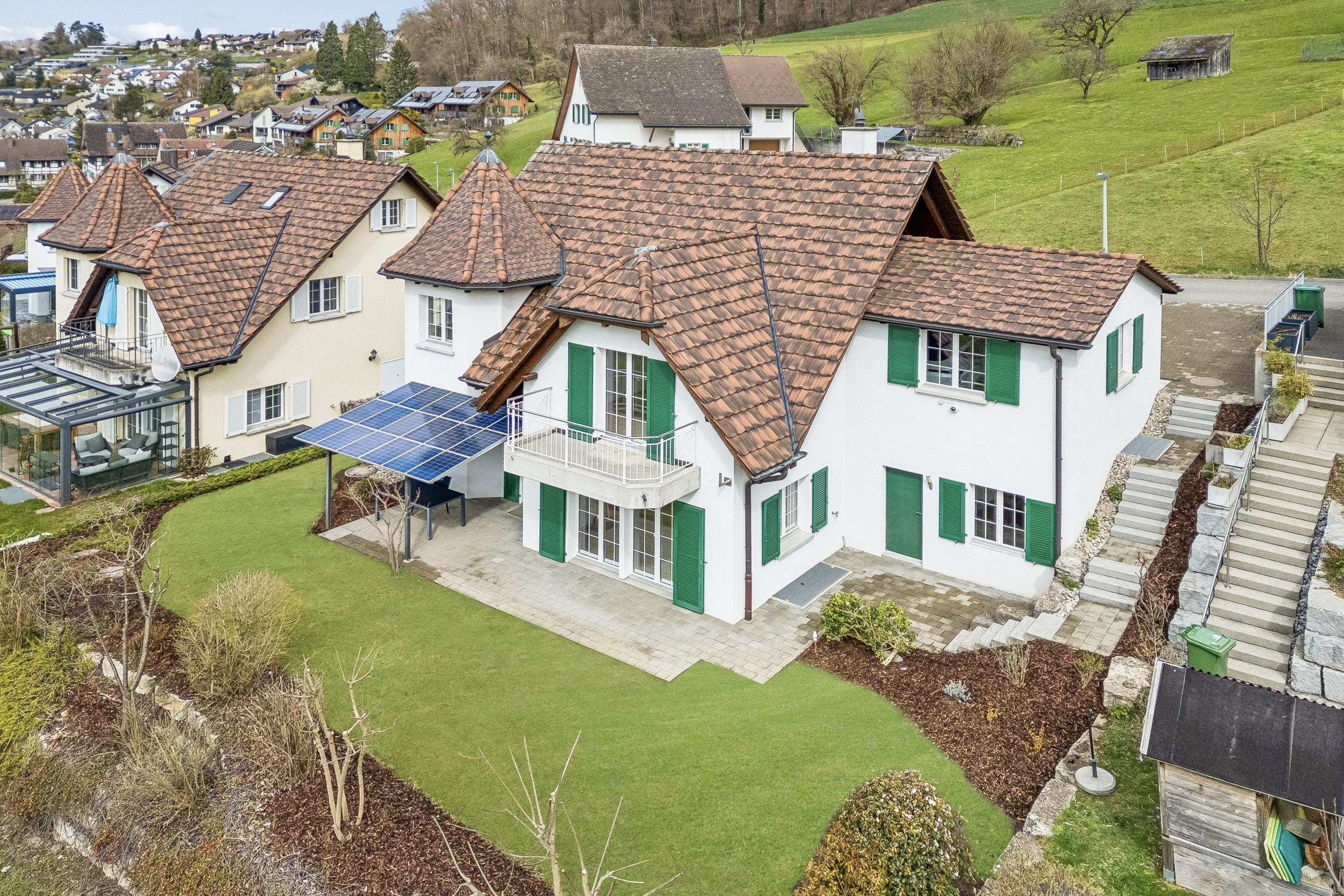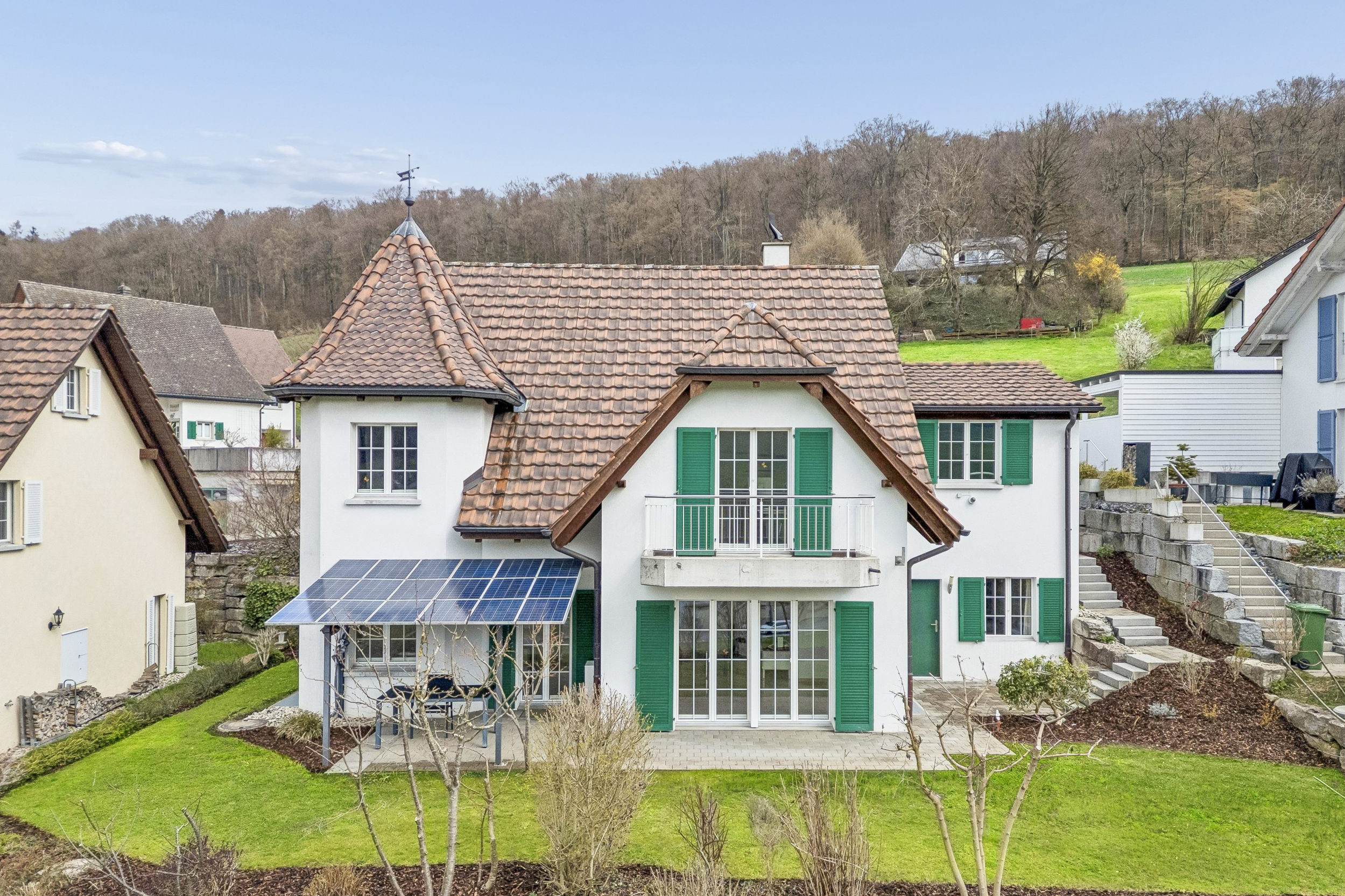 Es befindet sich an zentraler und wunderbarer Südwest-Hanglage in der Gemeinde Niederweningen.